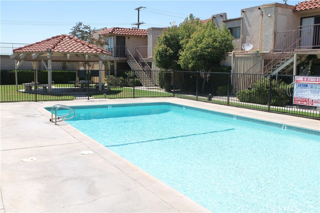Beautiful single story condominium in the gated area of Acacia Gardens with a detached 2 car garage. This condo unit is located in the rear part of the complex which makes it very private and secluded. Open and bright floor plan, freshly painted with neutral colors. Wood flooring in family/dining room with ceiling fan. Upgraded appliances including washer/dryer combo which will be included in the sale. Large sliding door in front with easy access to private patio and private storage area. No other structures in front of unit. This condominium is on ground floor and an end unit with no one on your side. Easy access to gated pool area and separate covered mailboxes. New water heater installed in 2017. Excellent location with easy access to schools, parks and shopping. Low HOA fees and low property taxes. A must see before it is gone!