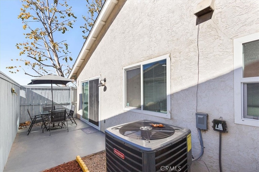 Spacious 2Bed/2Ba end-unit condo near Soboba Casino and local Schools! This charming 1,080sq. ft. condo offers comfort, convenience, and a prime location near stores and Mt. San Jacinto College. The unit features generously sized bedrooms and a private patio—perfect for relaxation or entertaining. The interior has been freshly updated within the last 2 years, including modern dual-pane windows and a sliding door that enhance energy efficiency. A new AC unit, installed this past summer, ensures year-round comfort, while the refrigerator is also new. The dining room features a stylish ceiling fan for added comfort. The detached 1-car garage, located in front of the condo, offers convenient parking and storage. The HOA includes trash, water, and exterior maintenance, as well as fire and roof insurance. Residents also enjoy access to community amenities. This condo is a fantastic opportunity for anyone seeking a well-maintained home in a great community with easy access to local attractions and amenities!