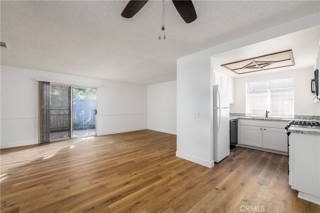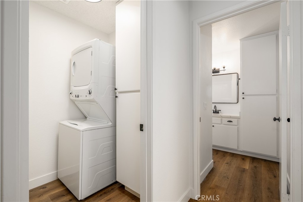 Welcome to this charming one-bedroom, one-bathroom upgraded and remodeled end unit, where modern sophistication meets cozy comfort. Nestled in a peaceful community, this residence offers a perfect blend of style and functionality. As you enter through the front door, you are greeted by an open-concept living space, bathed in natural light that streams through large windows. The upgraded flooring, of a beautiful laminate adds a touch of elegance to the entire living area. The neutral color palette creates a warm and inviting atmosphere, providing a versatile backdrop for any personal style. The kitchen is a culinary haven, boasting of sleek, appliances, granite countertops, and white cabinetry. The thoughtful design maximizes storage space and functionality, making meal preparation a joy. The adjacent dining area seamlessly connects to the living space, creating a perfect setting for intimate dinners or entertaining friends. The bedroom is a tranquil retreat, featuring mirrored doors, ample closet space, and a large window for plenty of natural light. The upgraded bathroom showcases modern fixtures, a stylish upgraded vanity, and a relaxing shower tub combo, creating a luxurious oasis within your own home. One of the highlights of this unit is its status as an end unit, providing additional privacy and a sense of exclusivity. Enjoy the convenience of a private garage, ensuring secure parking and additional storage space. The garage is easily accessible from the unit, adding to the overall convenience of daily living. Outside, a private patio extends your living space outdoors, offering a perfect spot to unwind, sip your morning coffee, or enjoy an evening breeze. The landscaping around the end unit enhances the curb appeal and adds a touch of nature to your surroundings. This upgraded and remodeled one-bedroom, one-bathroom end unit with a garage is not just a home; it's a statement of refined living. Whether you're a first-time buyer, a professional seeking a stylish retreat, or someone looking to downsize without compromising on quality, this residence offers the perfect blend of comfort and sophistication. Welcome home!