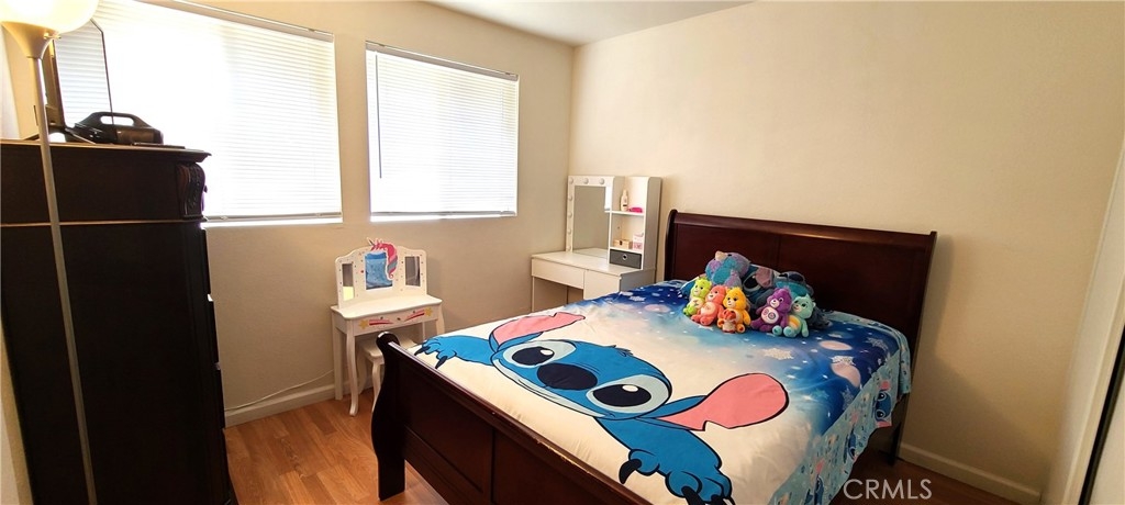 Truly a must see! Centrally located, this charming single story 3 bedrooms, 2 bath property is the perfect started home. Newer laminate floors are seen throughout the living area and bedrooms and newer tile floor in the kitchen. The master bedroom features his and hers closets. This home offers plenty of storage and room for a growing family. Two beautiful french doors welcome you to a private patio, great for entertainment and family BBQ's where you'll find a fruit tree full of delicious apples. Just in time for the holidays, this home provides the tranquility and privacy that you desire for your family. Don't let this rare opportunity pass you by. Pride of ownership definitely shows in this home. Come see for yourself and fall in love with your new home!