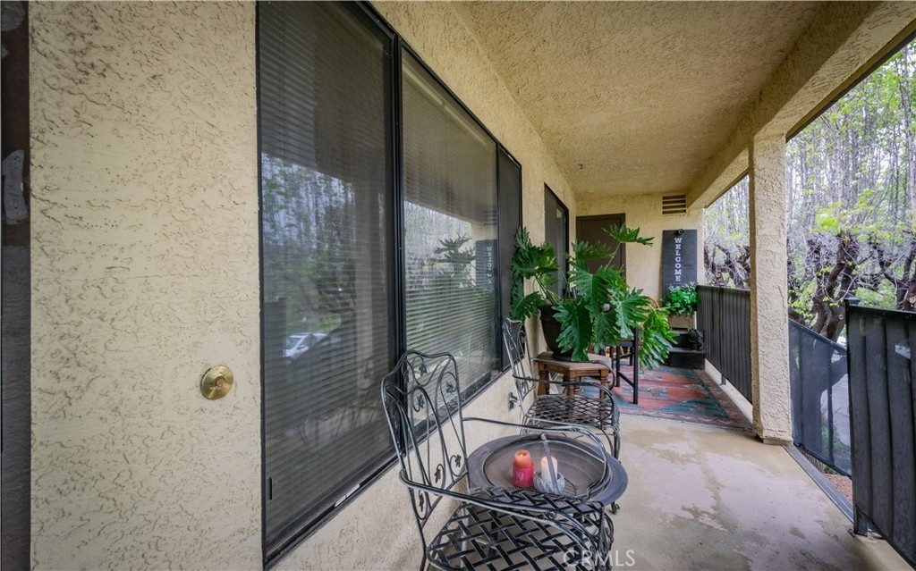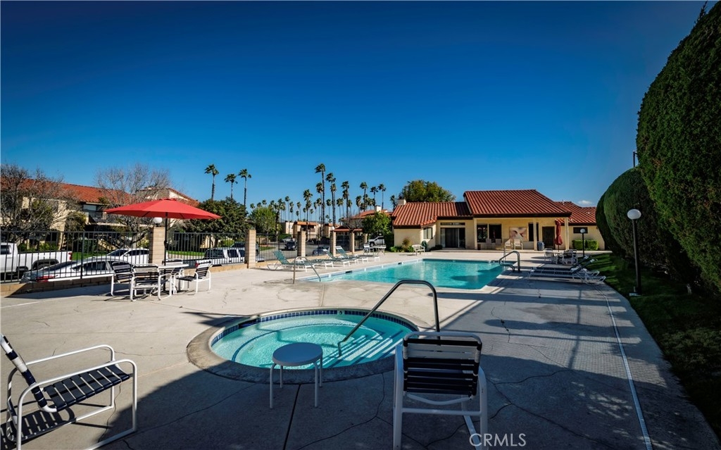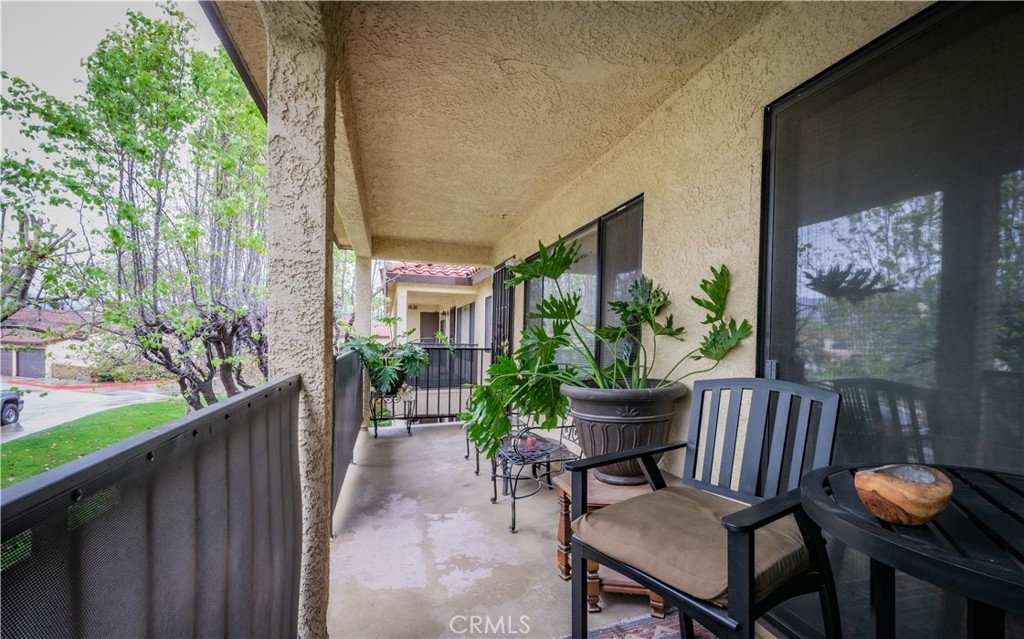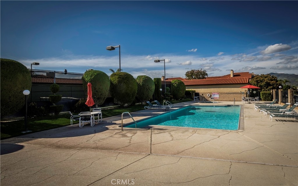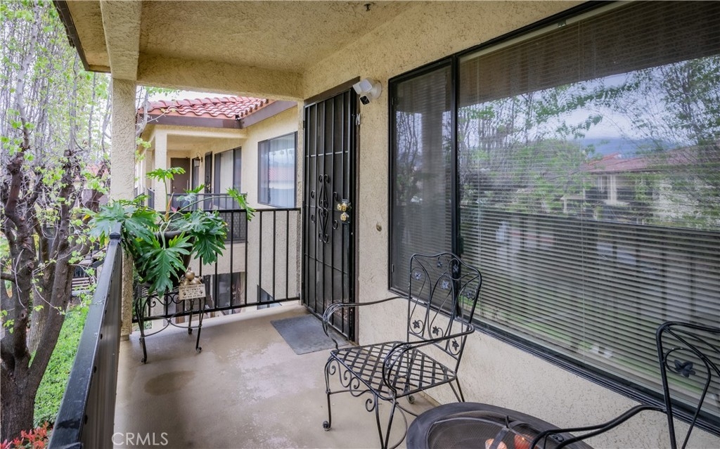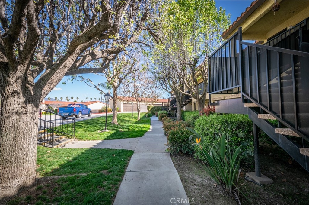 Hard-to-find 1 bedroom condo in East Hemet's Lincoln View Townhomes. Spacious, tree-shaded balcony accessible from both living room and sliding glass from bedroom. A perfect spot for sipping morning coffee or an evening glass of wine. Kitchen features gas stove, dishwasher, and breakfast bar. Full bathroom has skylight to let in natural light. Inside laundry with gas dryer hookup and built-in shelving. Security front door. Dbl car garage. Gated access to community with 3 swimming pools, tennis court, and club house with sauna, pool table, common area seating, and community kitchen.