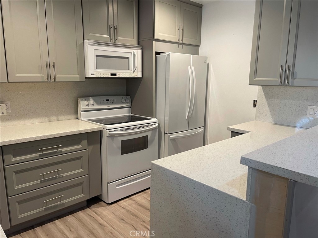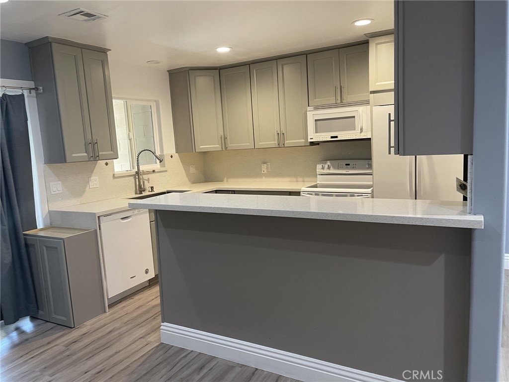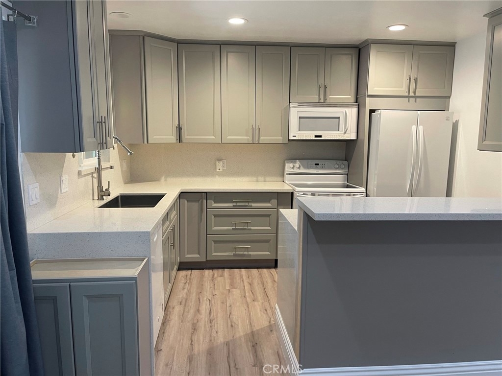 Upgraded senior condo in quiet community. Can lights in Living room, and bedroom. Upgraded flooring everywhere except closets which have carpet. Newer hard surfaces in bath and kitchen, upgraded appliances and stainless steel kitchen sink. dual pane windows. Soft close cabinets in kitchen, Attached oversized one car garage. Assoc. fee includes gas, water, sewer and exterior maintenance. Low step in Shower