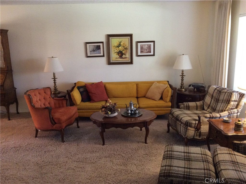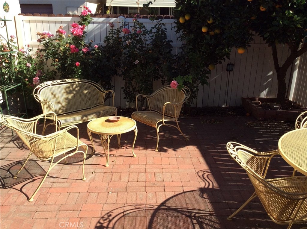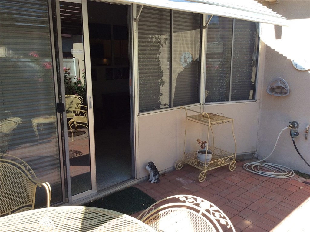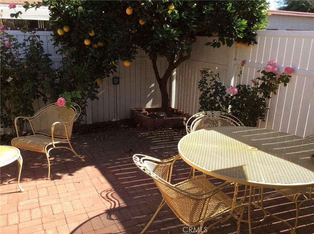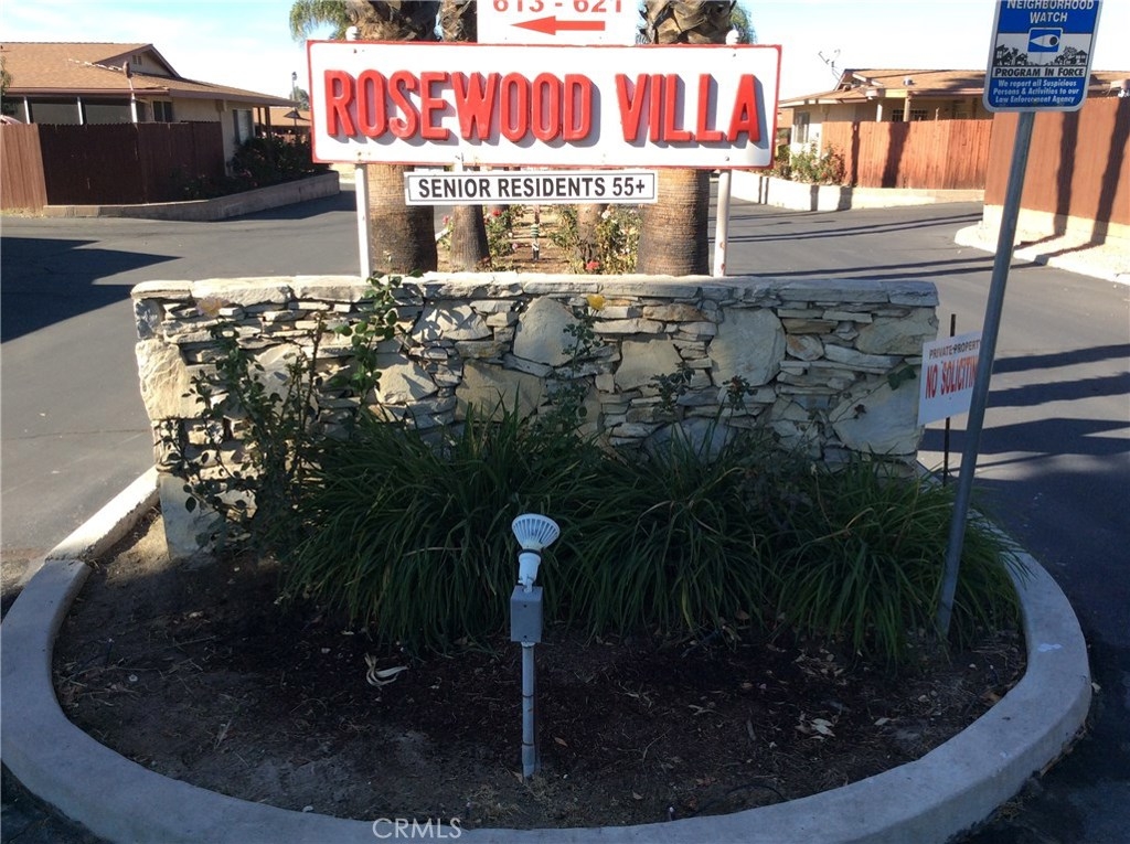 This is a beautifully maintained and kept 2 bedroom, 2 bath with 1,254 square feet in the ever popular and preferred Rosewood Villa age qualified community. This lovely home is nestled in the back away from street traffic, allowing for a more peaceful and secure setting. Walking in you'll appreciate the pride of ownership the Seller has had for many years. Large Living Room, bright and spacious kitchen with ample cabinetry and counter space makes it a comfortable home for today's retiree. The Master bedroom has an adjoining bathroom, walk-in closet, the 2nd bedroom is perfect for your overnight guest, office or craft room. Additional living space makes this one complete with the bonus room just off the Kitchen with access from the Master Bedroom too! Out back is a private sitting area adorned with the healthiest Valencia Orange Tree you'll ever see just waiting to be harvested by you! To finish this one off there is a 2 car garage with plenty of storage and direct access to your home. The community amenities include a pool, spa, covered shuffleboard, horseshoe area and a clubhouse with kitchen and banquet facilities. The monthly HOA fee includes water, gas, trash, outside grounds and roof maintenance. Be sure to stop over and see what the fuss is about over here at Rosewood Villa!
