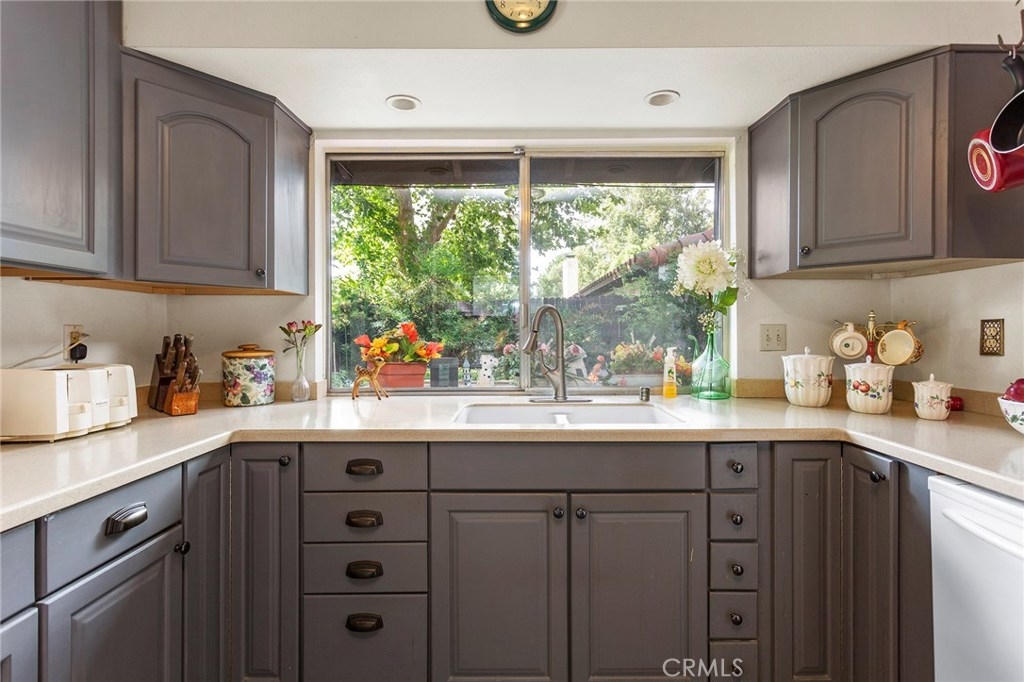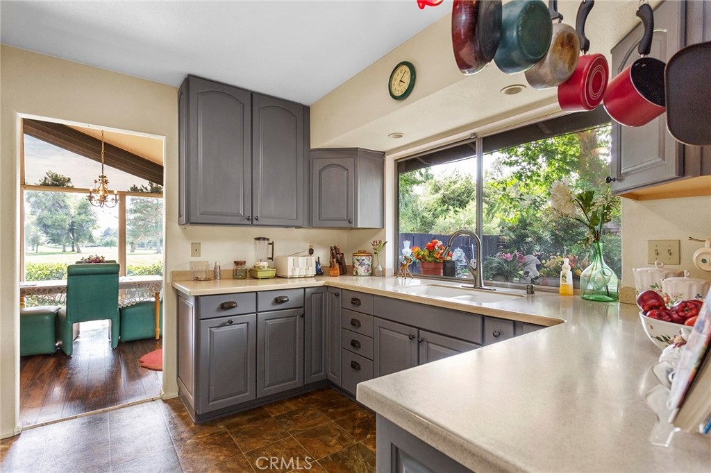 Stunning views of the Seven Hills Golf Course greet you as you enter this remodeled home in the 55+ community. This home has been remodeled to create a more open floor plan and bigger master bedroom space. Vaulted ceiling with huge windows allow for beautiful natural lighting. The kitchen has a wonderful open floor plan and over looks the shaded English garden like patio. The interior was painted with the designer color chameleon that changes hue and tone with the changing light throughout the day. Located right on the golf coarse and directly across the path from the pool make this the most ideal location in the Seven Hills Community.