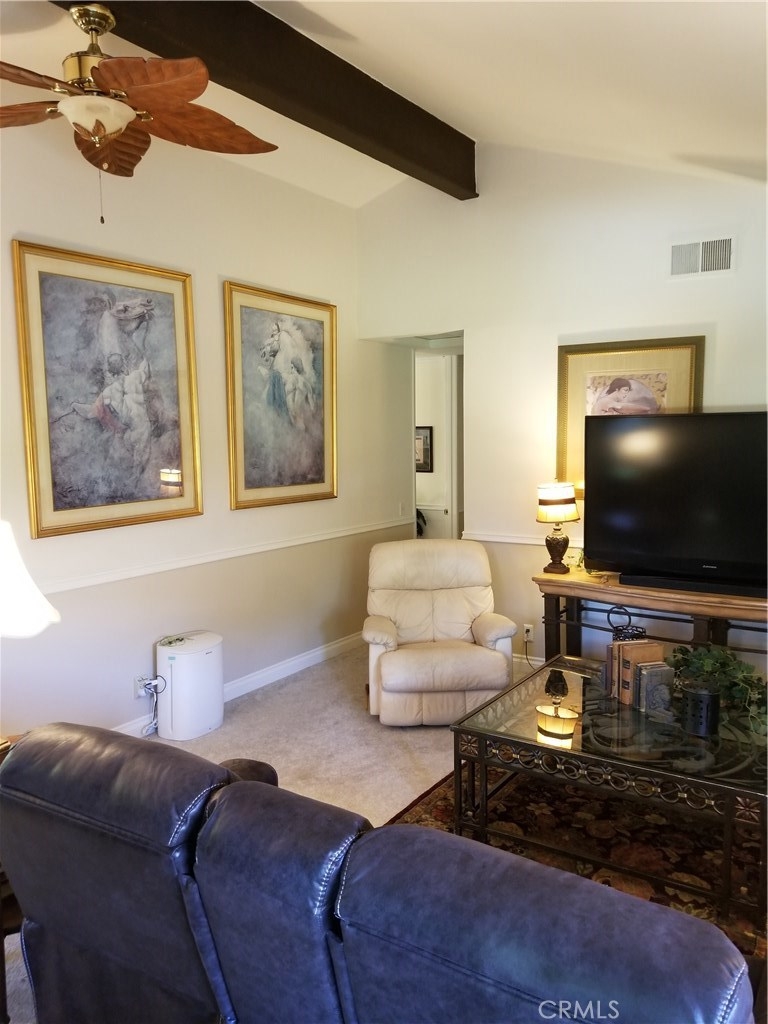Highly upgraded Seven Hills Villa Home in a shady park like setting. Surrounded by beautiful sycamores and pine trees and walking paths. Large living room with vaulted ceiling, floor to ceiling windows, freshly painted with new 5 inch baseboards, chair rails, and new ceiling. New Granite counters in the Kitchen with a very large pantry that was recently added. All new lighting fixtures throughout the house. Both bathroom shower enclosures recently refinished to a sparkling white .A.C. Unit replaced in 2018. Newer refrigerator comes with the home! New dishwasher! All closets remodeled. Mirrored wardrobe. Ceiling fans throughout, Storage Galore! Newer cabinets in the garage to store everything! And check out the incredible backyard for entertaining! Lush landscaping with Malibu lighting, and automatic sprinkler system. HOA includes your water, trash, sewer, landscaping, and a beautiful pool and spa for villa residences only. Views off both the bedrooms are of the main park in the complex. Situated in the golf course community that has a restaurant and bar. Very close to shopping as well.(Chandelier, ceiling fan in lv, and valances considered personal property) Do not miss out on this gem!