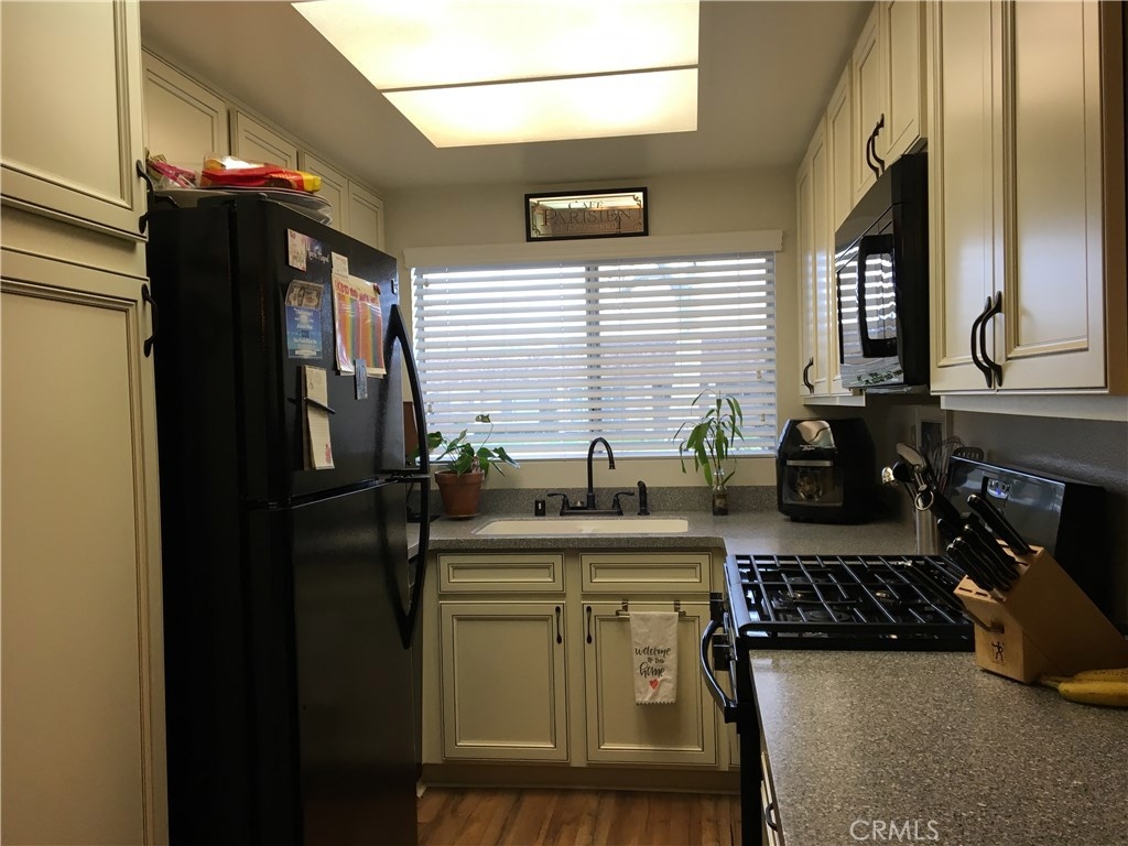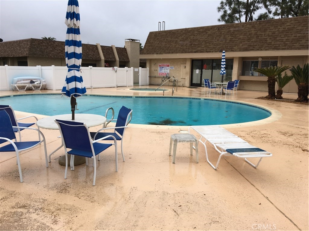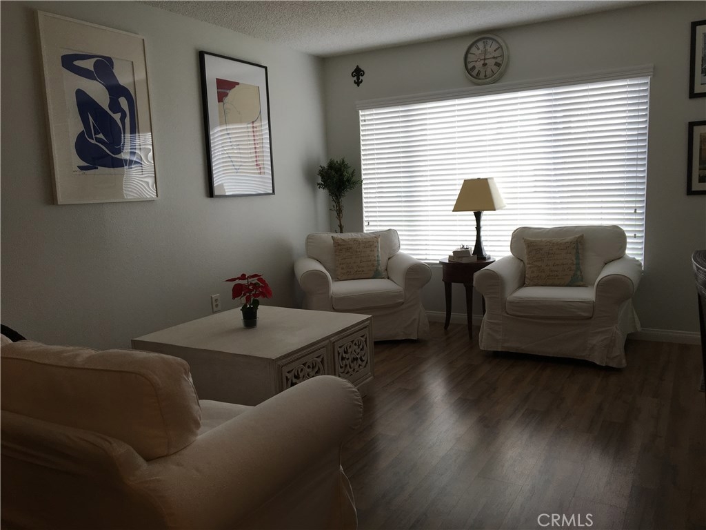 Looking for a Cozy Gem to call home...you've found the perfect place. This 55+ Community is beautifully maintained with a very inviting pool and spa, and plenty of green space for your morning walk. Newer laminate floor, recently remodeled kitchen with gas stove and built-in microwave; all appliances included. Very spacious living area and dining right off the kitchen with a stunning new light fixture, and matching fixture in hallway. Master includes a large walk-in closet, sliding door to tiled patio with new shed and access to your parking area. Master bath has tub with shower, and a stall shower in guest bath; both have been recently resurfaced. A very SPECIAL FEATURE is the full size washer and dryer included. HOA includes roof, outside walls, termite, water, trash and sewer. This home has been lovingly cared for. You won't want to miss your chance to make it your new home.