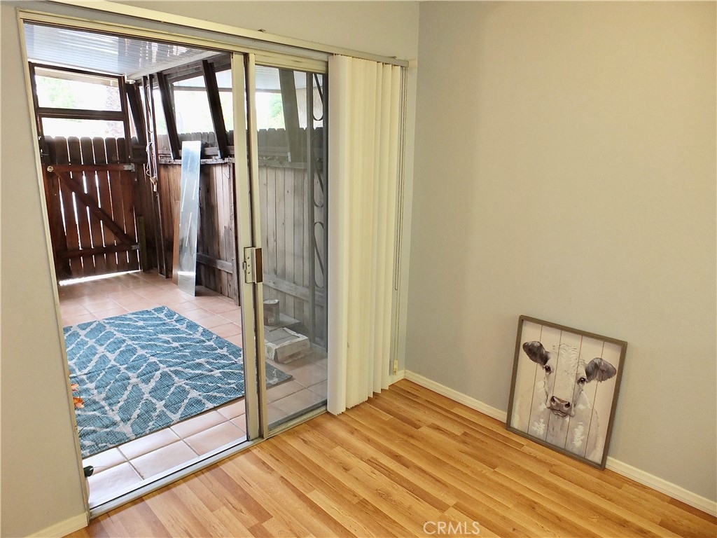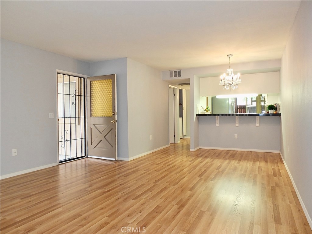 A spacious 2 bedroom 2 bathroom unit tucked away in Sunrise Village... a charming 55+ community in Hemet. You see and feel the serenity everywhere you look including towering trees and distant hilltops. Just moments from the charming pool & clubhouse ... via a winding garden path ... is this beautifully maintained & spacious unit. The large sun filled living room enjoys serving bar access to the nicely appointed kitchen... opening to the dining area and private rear patio. The laundry alcove (designed for a stackable washer/dryer) is central to both bedrooms and bathrooms. The guest bedroom features a walk in closet... and the guest bathroom has a glass doored shower stall. The primary suite, reflected in mirrored wardrobe doors, boasts a private bathroom. Sheltered parking and the pool plaza are both big pluses. Life is good in Sunrise Village... very good!!