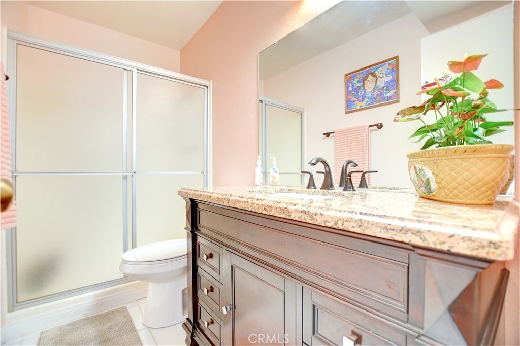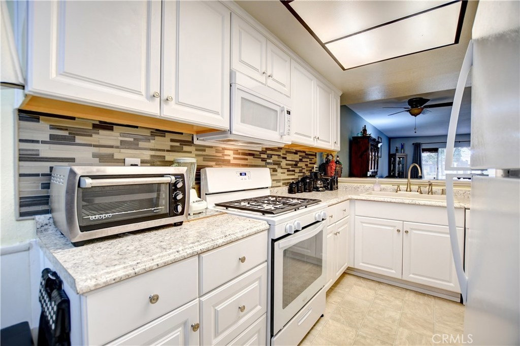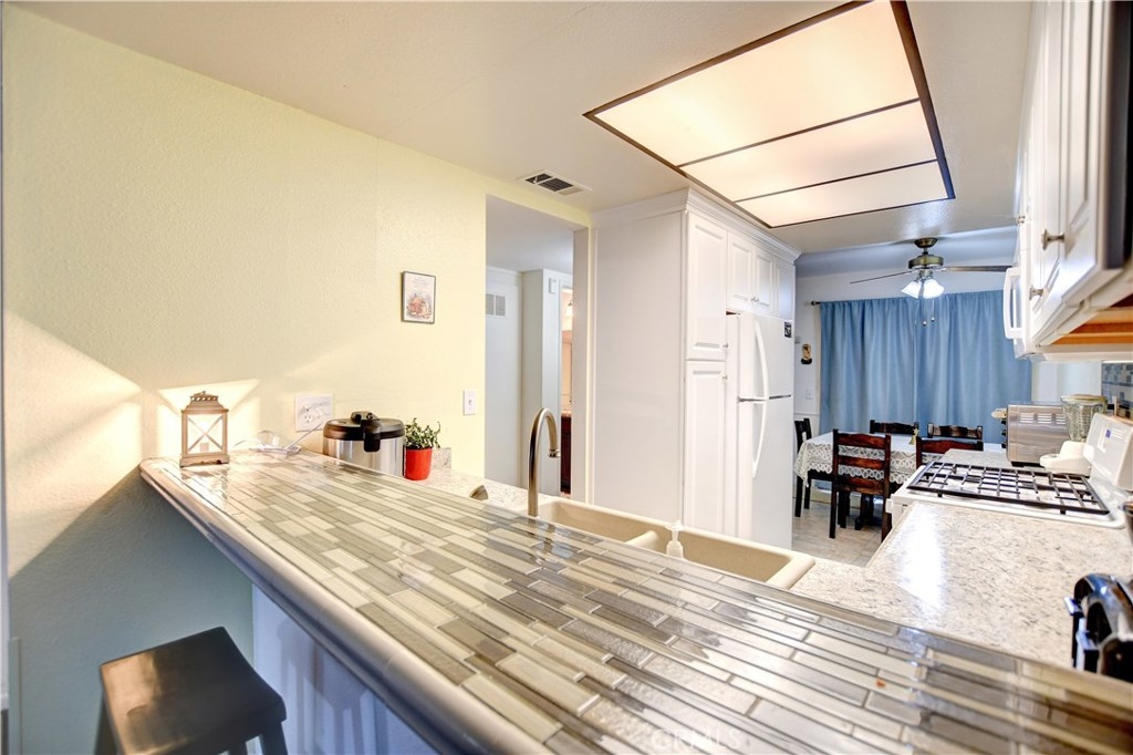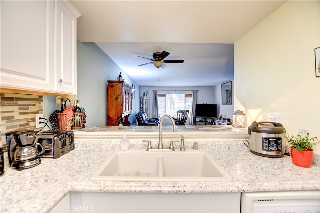 Beautiful 2 bedroom 2 bathroom condo unit in the Sunrise Village Homeowner's Association, a senior community that includes a pool, spa, clubhouse and common ground maintenance. This well kept condo was built in 1975 and features 1023 sf with an open floor plan, tiled breakfast counter, granite counters in kitchen, and an eat in kitchen. As you enter the home, you'll notice the large family room that opens up into the dining room with a tiled breakfast counter in the kitchen area. The 2nd bedroom and bathroom are across from the eat in kitchen with access to the rear patio via sliding glass doors and at the end of the hallway is where the master bedroom and master bathroom are found. Ample storage space in the middle of the hallway next to the gas water heater. Privately fenced rear covered patio with gas washer and dryer hook ups and access to the assigned parking space on the side of the home. Conveniently located near major highways, shopping, dining, and entertainment.