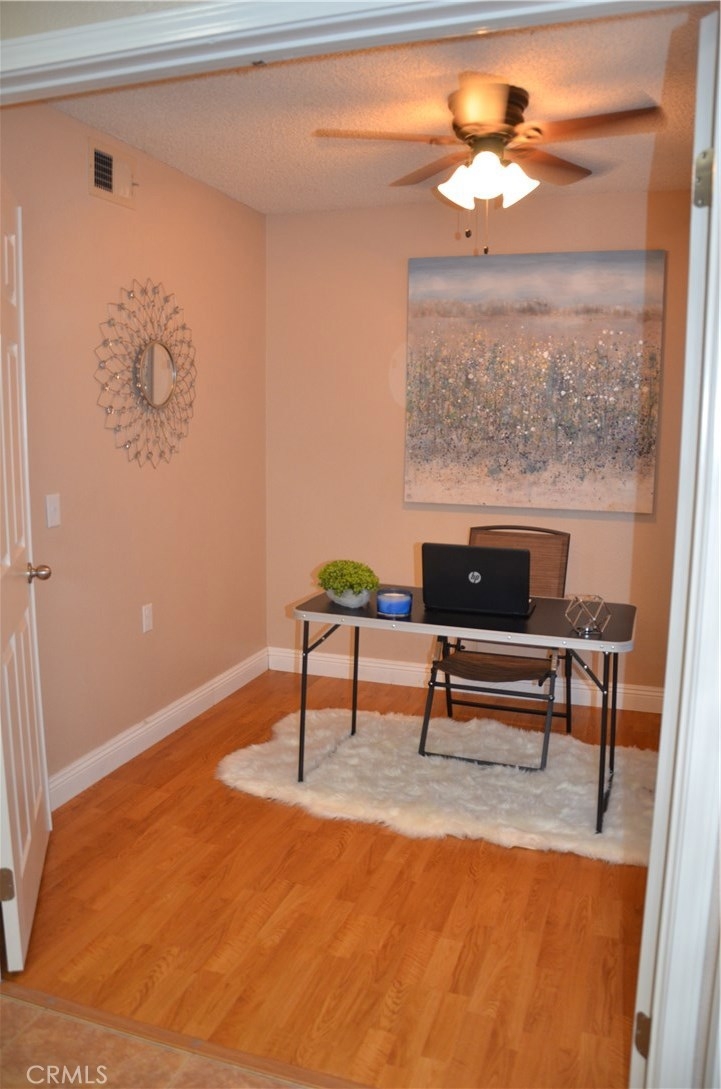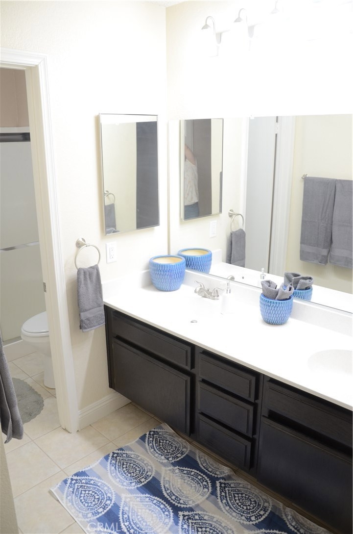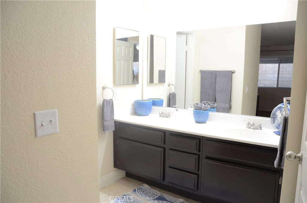WELCOME TO YOUR NEW HOME IN THE MUCH SOUGHT AFTER COMMUNITY OF TERRA LINDA VILLAGE. This home is actually a condo but feels like a SINGLE FAMILY RESIDENCE. Your home shows like a model. The Kitchen features beautiful white cabinets, refinished laminate counter tops, all newer Stainless appliances, and refrigerator about 2 years new, newer sink, faucet and garbage disposal, Comfortable Den/Office. Living Room is spacious with a wood and gas fireplace, surrounded by stone with a beautiful mantle. Your home features 2 MASTER BEDROOMS and MASTER BATHROOMS. Newer water lines and faucets in both baths. Spacious walk-in closets with built-ins throughout. Laundry room is set up for a gas or electric dryer. Washer and dryer are included. Your home also features laminate floors and tile floors, ceiling fans, blinds, paneled interior doors and all new light switches and outlets. Garage (2 car) features above storage with pull down door for access. Back yard is low maintenance and has a covered patio. The Association INCLUDES exterior maintenance including painting, roof issues, trash pickup, common grounds, front yard landscaping and use of the club house. Located close to shopping and restaurants, near to Mary Henley Sports/Recreation Park, Diamond Valley Lake/Valley-wide Recreation Park District which includes a public outdoor swimming pool and hiking trails. A short distance drive to Cabazon, Palm Springs, Temecula or San Diego.