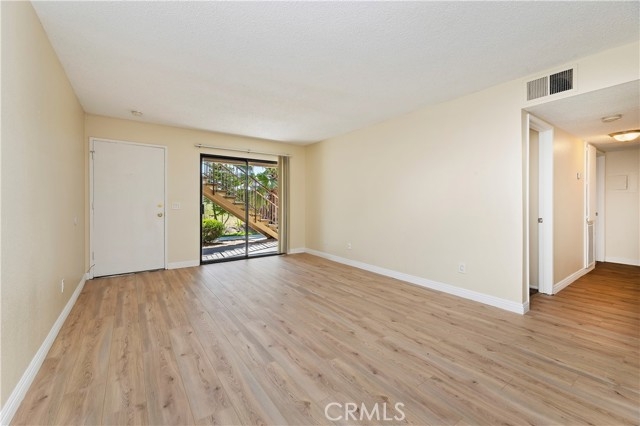 Charming, highly desired first level unit located in the Acacia Gardens association featuring 2 bedrooms, 2 bathrooms, 910 square feet of living space and is in a sought after gated community. This home is perfect for an investor or the first-time homeowner looking to start a family. Once you enter this beautiful light & bright home, you will notice new upgraded laminate flooring throughout and freshly painted interior with neutral colors waiting for your added touch. The family room with a patio door allows for natural light and fresh air. Open to the family room is the dining room great for mingling with friends and family. The kitchen offers stainless steel appliances and an abundance of cabinets. Down the hall is a coat closet adding additional storage, stackable washer/dryer combo and a full guest bathroom with low maintenance tile floors. The guest bedroom is good in size with plush carpet, a large sliding door giving access to the front porch, ceiling fan and floor to ceiling closet doors to store your belongings. The primary bedroom is a personal retreat with carpet, ceiling fan, a window for added light, his/her floor to ceiling closets adding plenty of storage space and an en-suite full bathroom. This home is family oriented & conveniently located to schools, shopping, restaurants, hiking/biking, Soboba Casino & Resort, Diamond Valley, Skinner & Perris Lakes for the avid fisherman or the outdoor enthusiasts, minutes to several of Temecula’s finest Winery’s, Casino’s and the 10, 60, 74, 79 and 215 freeways for your traveling needs.