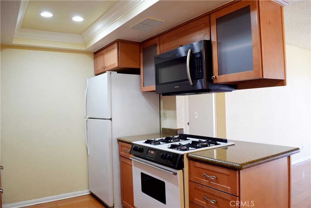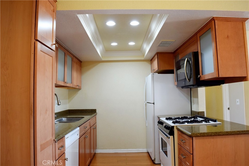 Come see this 2-bedroom, 2-bath condo located in the gated community of Acacia Gardens. The open layout makes smart use of space, with laminate flooring throughout the living room, dining area, and kitchen. The kitchen features granite counters, and plenty of cabinet space with kitchen opening up to the living room. The balcony includes a private storage room—perfect for keeping extra items tucked away but close at hand. The primary bedroom has two closets, and the second bedroom is flexible—great for guests, a home office, or extra living space. Laundry is located in the hallway, with washer and dryer included. A detached 2-car garage sits near the entrance and offers even more storage with built-in cabinets. Low property taxes, The Acacia Gardens HOA covers water, trash, and access to community amenities including a swimming pool, courtyard, and gazebo. Conveniently located near Hemet Valley Mall, restaurants, shopping, schools, Seven Hills Golf Club, Diamond Valley Lake, and major freeways.