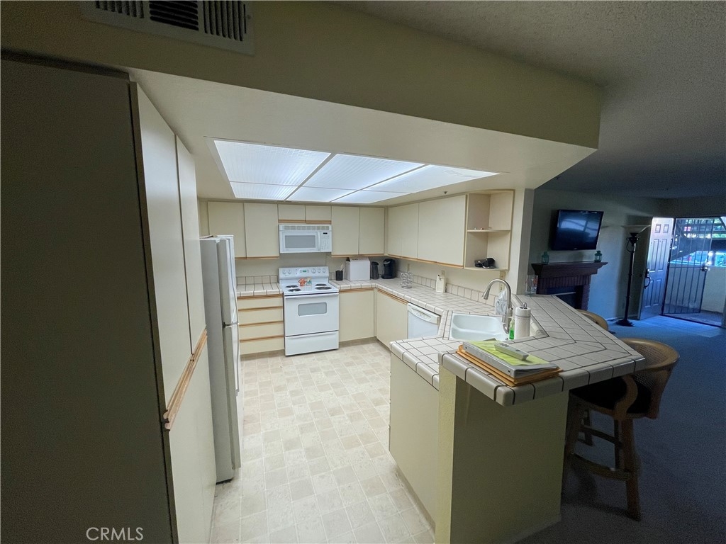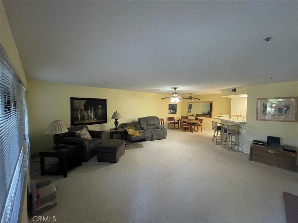 Large open floorplan with a Livingroom open to the kitchen & dining room. 2 good sized bedrooms and 2 bathrooms. Indoor laundry with washer & dryer included. Extra storage cabinets in the hall. 2 car garage with approx 396 sq.ft. for your cars or storage area. Covered front patio open to plenty walkways and a beautifully landscaped complex. Security gated entrance. The HOA fee includes the use of three community pools, tennis court, spa, a club-house along with monthly cost of trash, water, sewer and internet included.
