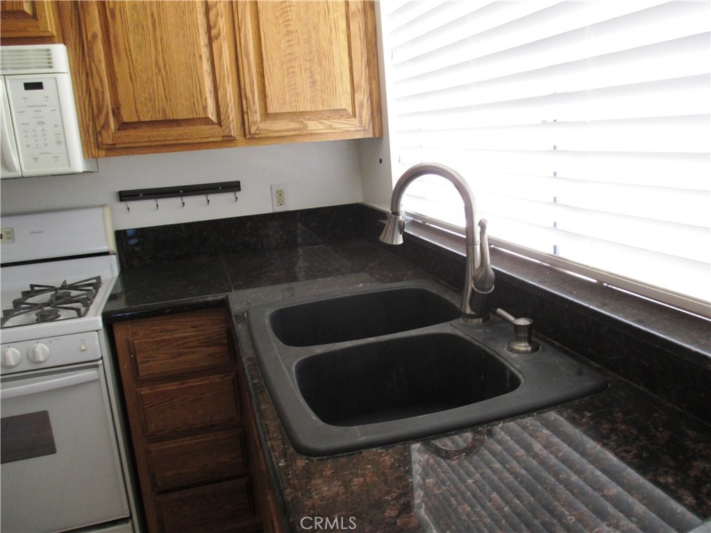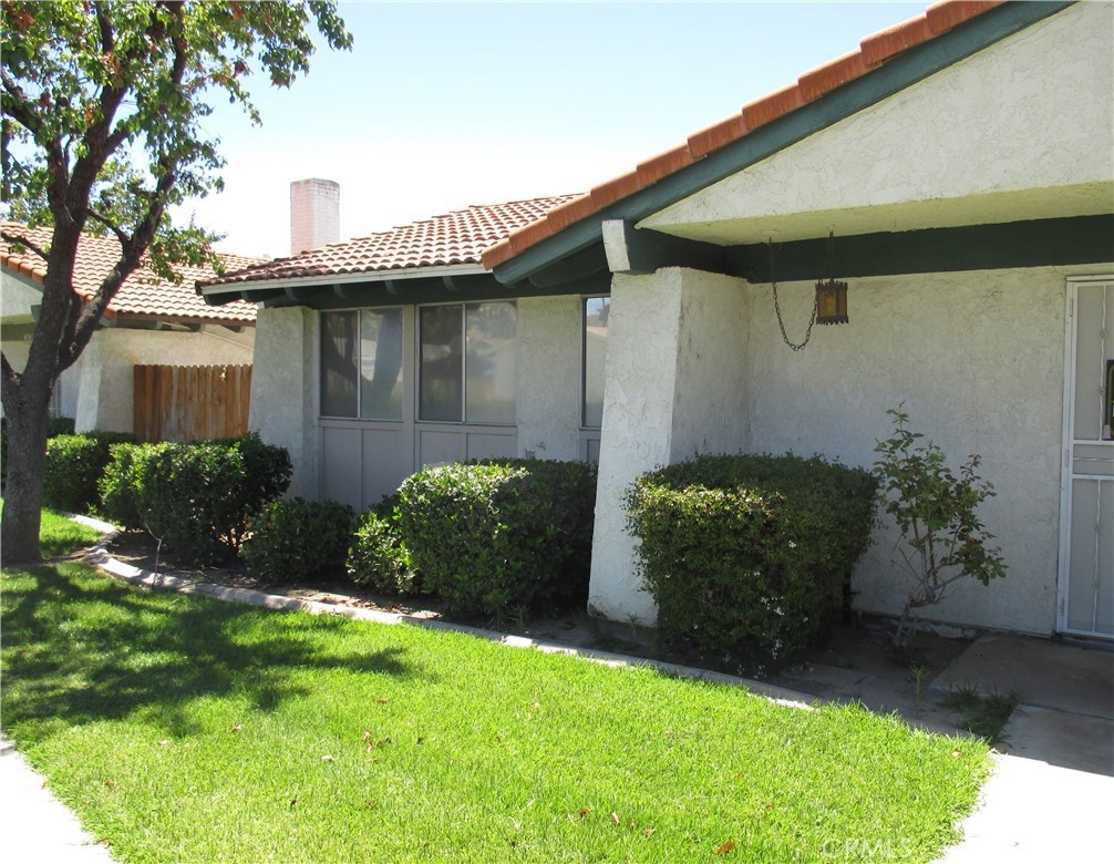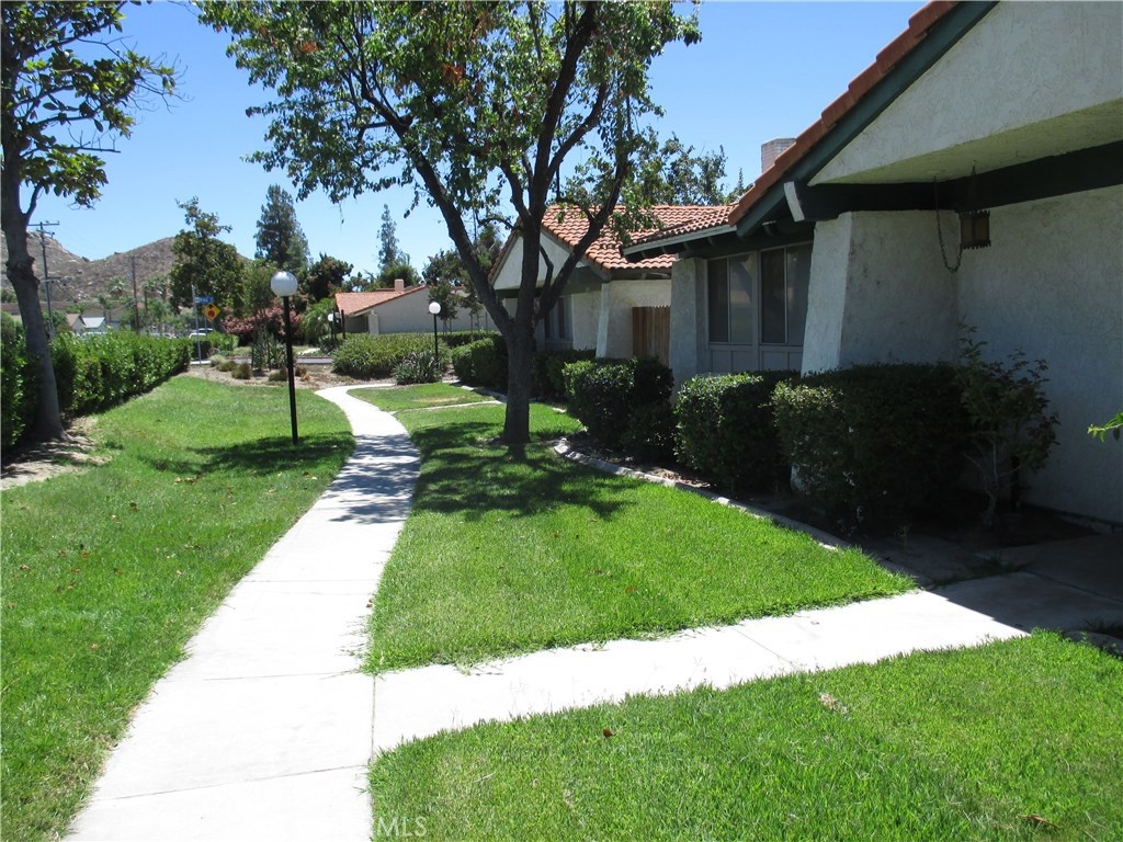 This is a cute little single story condo that fronts on Buena Vista Street. The living room is nice sized with a fireplace. There is a dining area between the living room and the kitchen. The master bedroom has a large bath that opens in the bedroom and also into the hallway. The secondary bedroom shares the master bath. The two car garage is oversized and the laundry is located in the garage. The association maintains all of the greenbelt areas. This is a cute unit priced to sell.