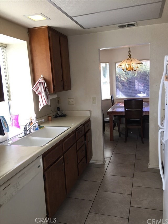 Wonderful, Light, bright, single level, West Hemet, Tierra Linda Townhome on quiet culdesac. End unit with views of hills and mountains. Features include vaulted ceilings, spacious family room with fireplace, indoor laundry room, attached 2 car garage, private fenced back yard with patio, 3rd room can be office, den, or 3rd bedroom. Flooring is newer tile and carpet. Bedrooms have large walk in closets with adjoining bathrooms. Low HOA of $160 includes front yard and common area maintenance, clubhouse, and green belts. Newer A/C. Home is move in ready and includes newer washer/dryer and refrigerator.